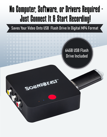 SoundBeast® Video to Digital Converter | Record Video & Audio from VCR, VHS Tapes, AV, RCA, Hi8, Camcorder, DVD, Gaming Systems | Saves to USB Flash Drive